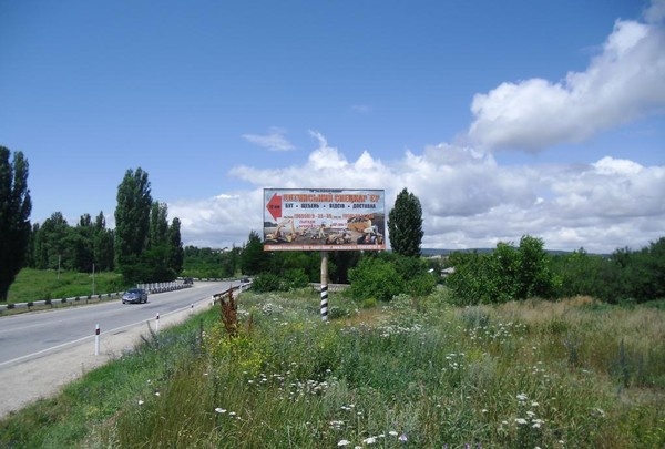 Щит 6x3, Трассы, г. Белогорск. В сторону Симферополя. 44+200. Поворот на Красноселовку. (Перевал. До моря 35 км.)